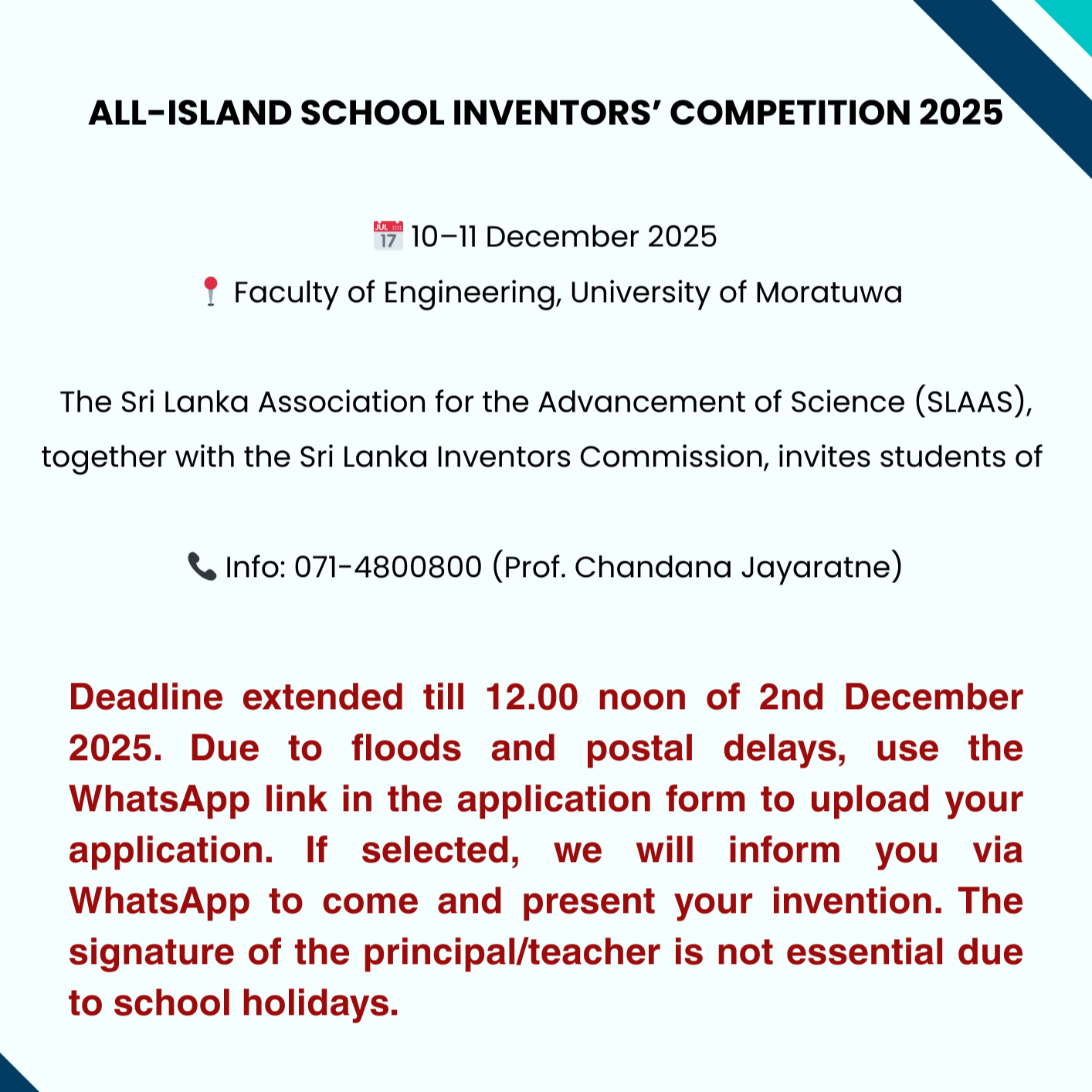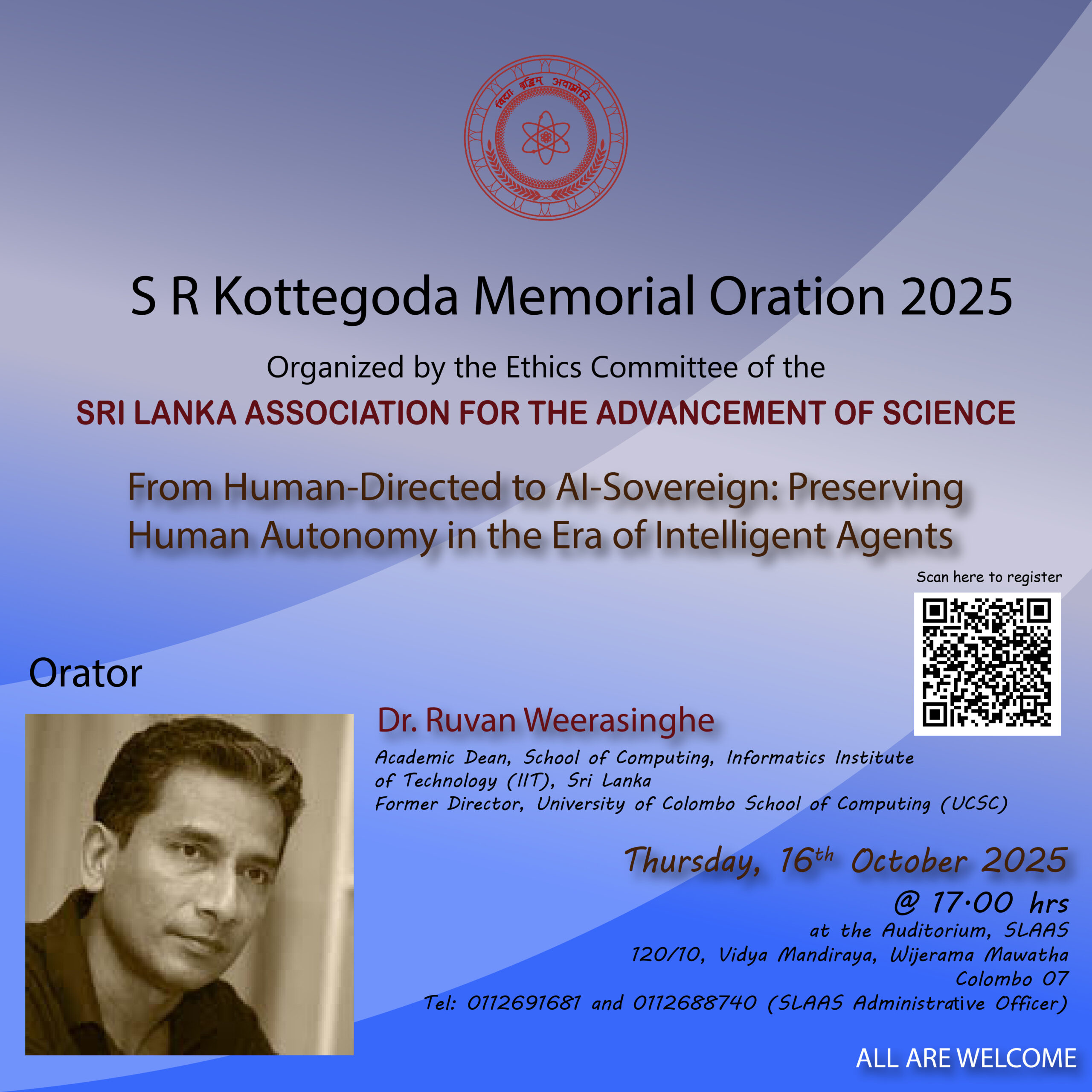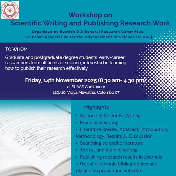 The Sri Lanka Association for the Advancement of Science (SLAAS), the premier scientific body in the country was founded in 1944 and incorporated by Act of Parliament No 11 of 1966. At present, SLAAS has a membership that numbers over ten thousand, representing almost all disciplines of science.